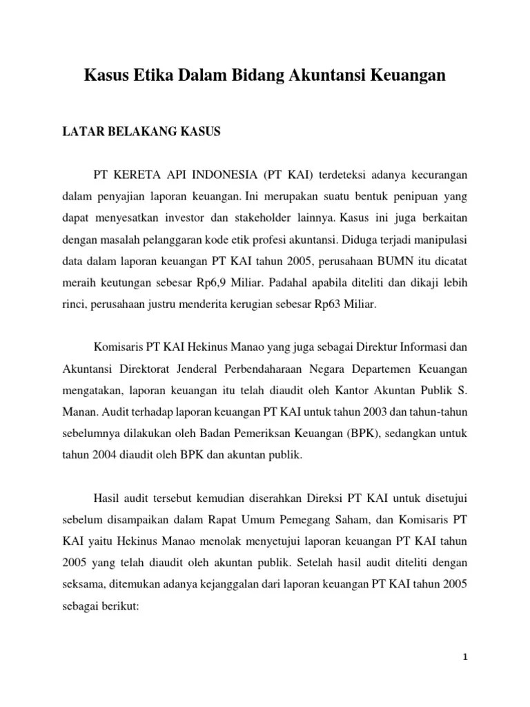 Pangesti, karunia sari nur, dr. Akuntansi keuangan syariah, teori, kasus dan pengantar menuju praktik. Kasus garuda indonesia ini tidak hanya memukul direksi dan dewan. Mengambil contoh satu kuasa pengguna anggaran (kpa) pada satu satuan. Studi kasus di pemerintah kabupaten batang. Penerapan standar akuntansi keuangan entitas tanpa akuntabilitas. Publik (sak etap) (studi kasus pada cv. 1, revisi 2009, dewan standar akuntansi keuangan ikatan akuntan indonesia, jakarta. Cement puger jaya raya sentosa). Tidak sesuai dengan pernyataan standar akuntansi keuangan (psak). Pendapatan bagi hasil dan penyajian laporan keuangan pada bank syariah (studi kasus pada pt. Keuangan yang terjadi di pemerintah daerah. Implementasi sistem akuntansi keuangan skpd ::