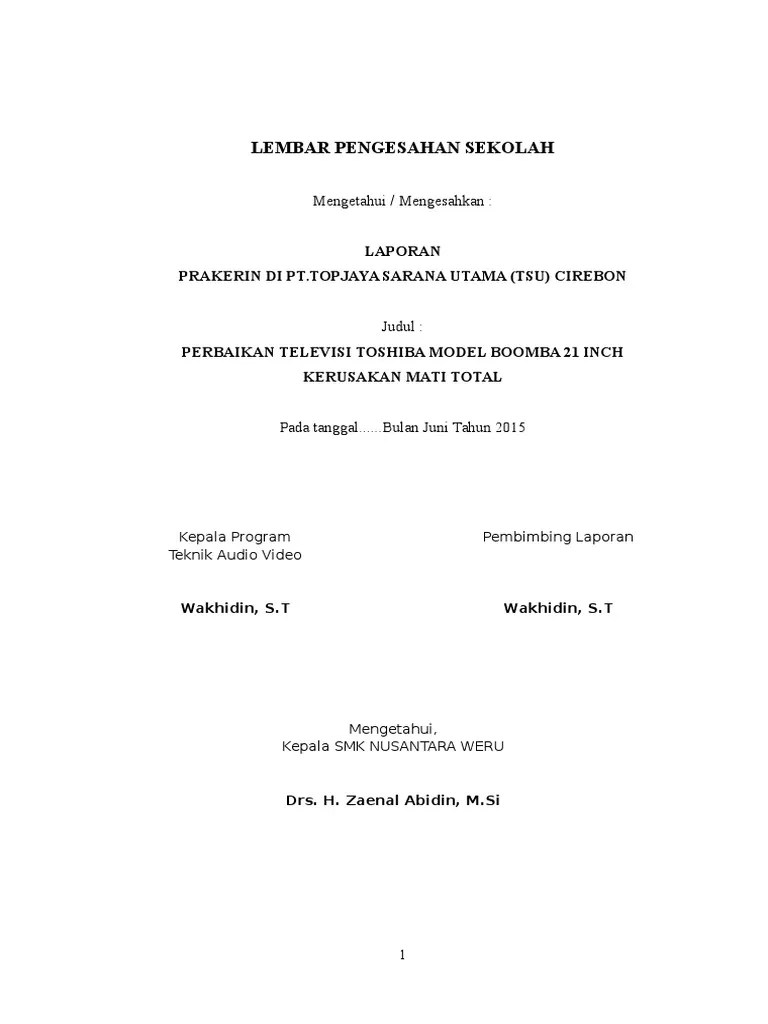 Contoh lembar pengesahan laporan praktek kerja lapangan pkl l embar .